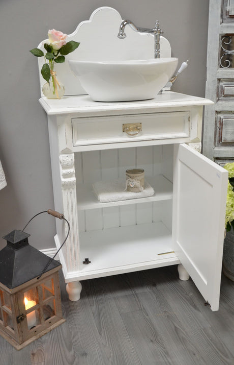 €1.295,00Grundpreis /Nicht verfügbar"Murneau" weißer Landhaus-Waschtisch im Shabby-Chic-Stil 60 cm
