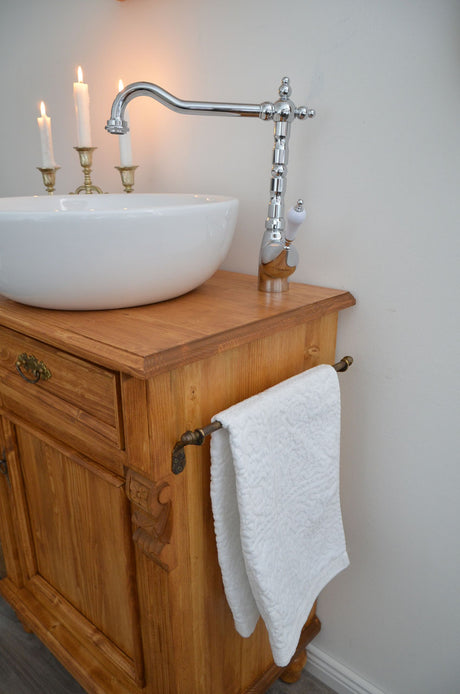 €2.295,00Grundpreis /Nicht verfügbar"Mirandé" heller Landhaus-Waschtisch aus Massivholz mit Handtuchstange 60 cm