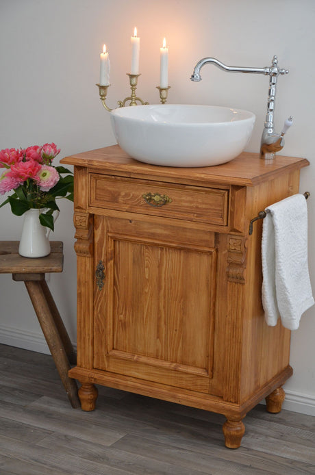€1.795,00Grundpreis /Nicht verfügbar"York" Massive Landhaus-Waschkommode mit Eichenplatte 83 cm
