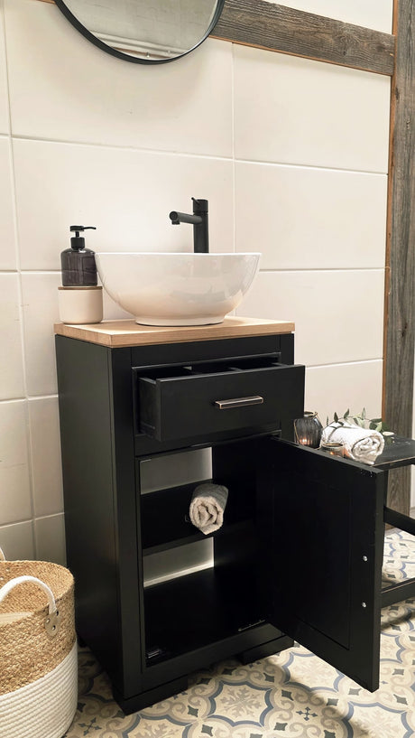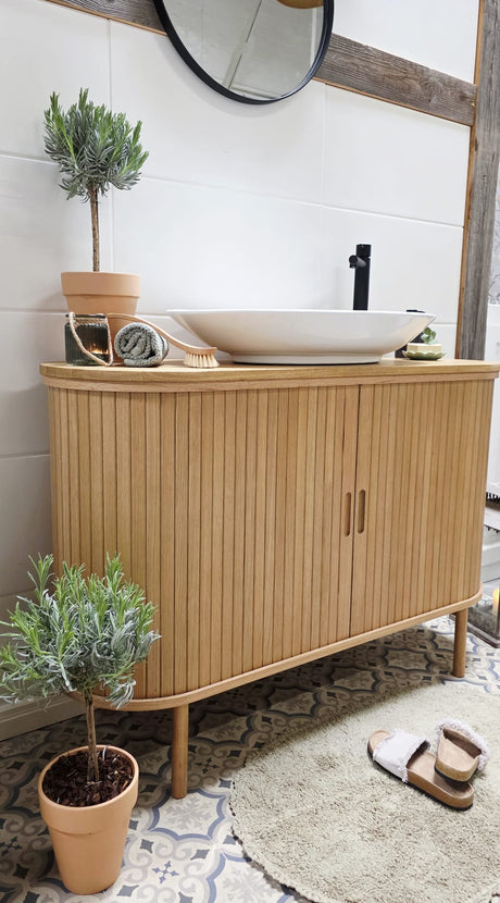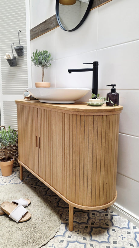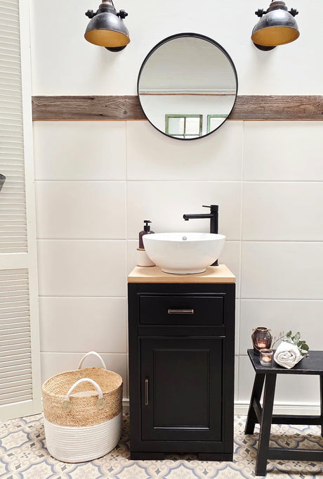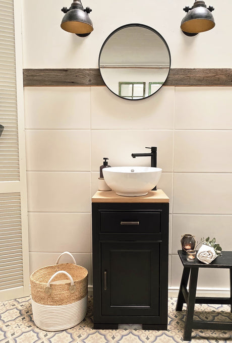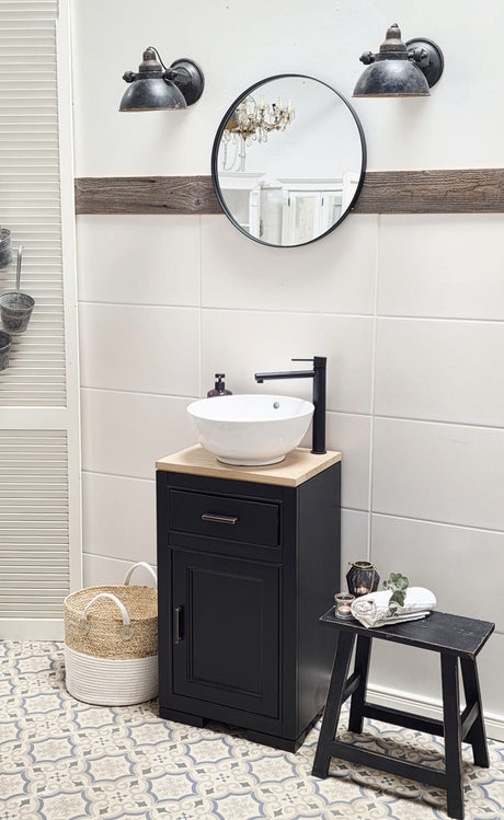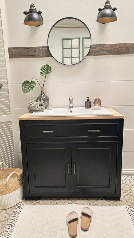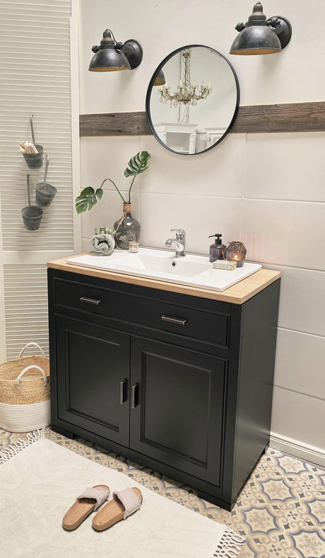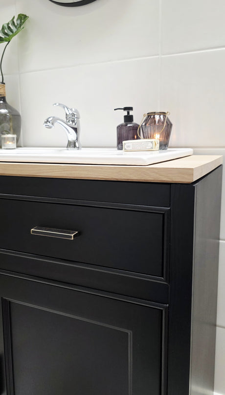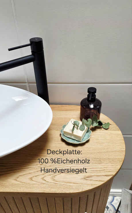 We love wood in the bathroom! This place, which is normally dominated by tiles and ceramics and radiates coldness, is crying out for wood, because no other material radiates so much warmth and comfort. It's a good thing that we at Land & Liebe Badmöbel are able to seal wood to make it highly water-repellent, so that a solid wood washbasin can soon move into your bathroom. What's more, solid wood is much more durable than chipboard or plastic, as our antique chests of drawers show.