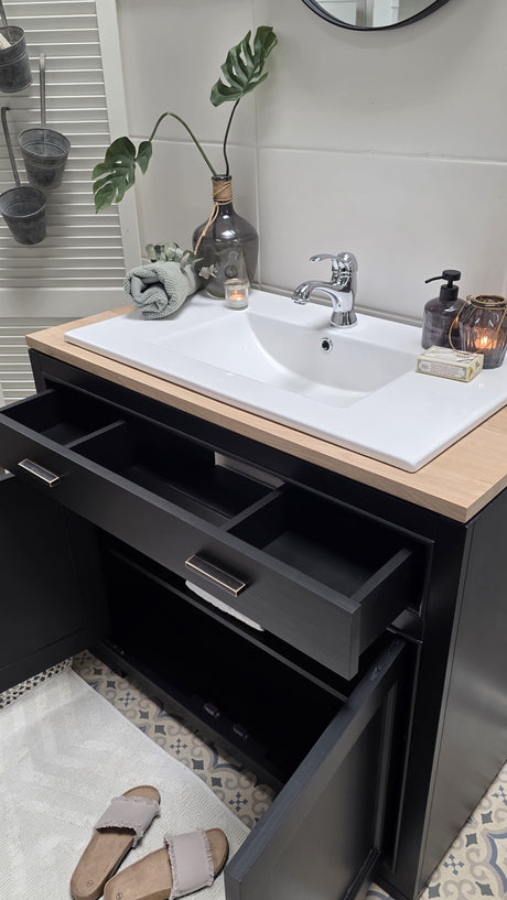 €1.229,00Grundpreis /Nicht verfügbar"Nélois" Landhaus-Waschtisch-Unterschrank mit vollabdeckendem Waschbecken 65 cm
