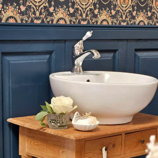 Unsere Retro-Armatur ist speziell für Waschbecken konzipiert, die eine Bohrung für eine Armatur haben. Sie brauchen keine bedenken haben, ob der Wasserhahn zur Bohrung Ihres Waschbeckens passt, denn die Bohrungen im Becken sind genormt.