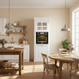 Le lave-vaisselle en bas facilite le chargement, tandis que le four est positionné à une hauteur optimale : fini les contorsions et les efforts inutiles. Derrière les élégantes portes d’armoires, l’harmonie de votre cuisine est préservée ; la technologie moderne reste invisible et le charme rustique est mis en valeur.