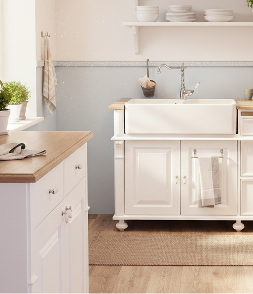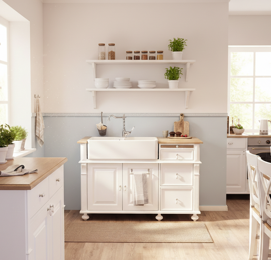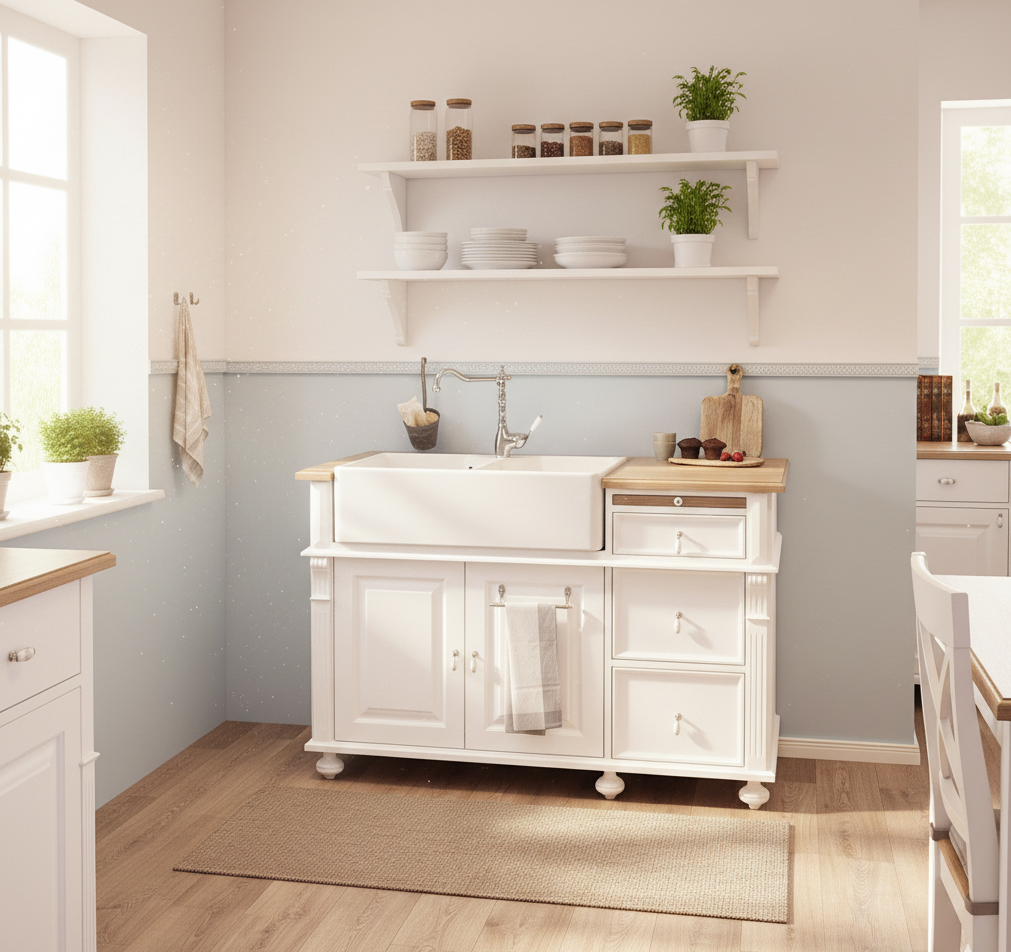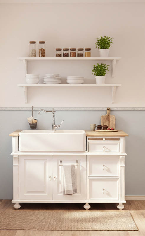 Le meuble sous-évier de style champêtre n'est pas seulement un élément fonctionnel de la cuisine, mais aussi un véritable atout esthétique qui éveille les sens. Il allie harmonieusement esthétique, confort et praticité.