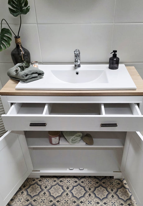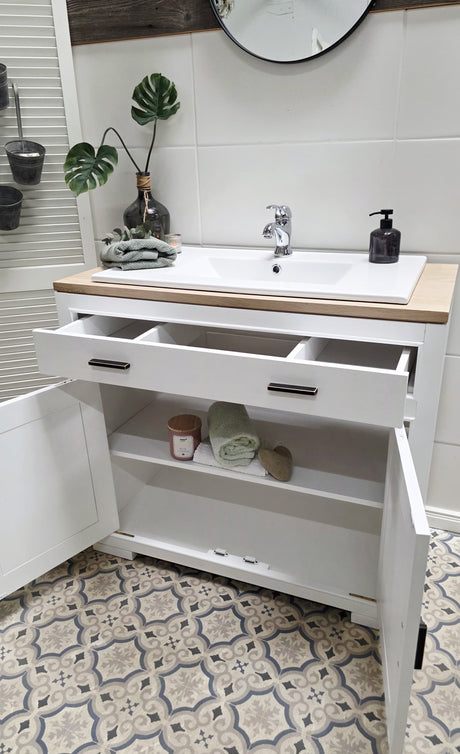 Bringen Sie den Charme des Landlebens in Ihr Bad! Mit unseren einzigartigen Waschtischen im Landhausstil schaffen Sie eine gemütliche Atmosphäre. Warmes Holz, harmonische Farbtöne und eine wasserabweisende Versiegelung – pure Wohlfühlmomente garantiert!