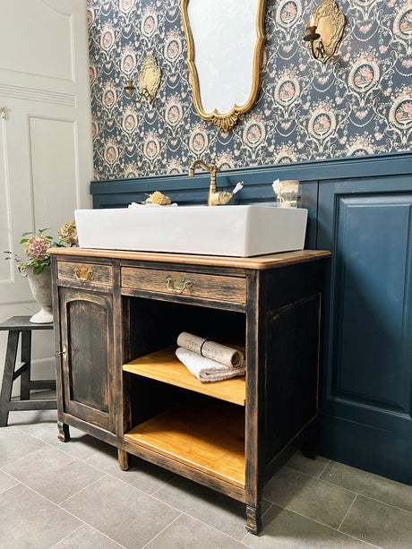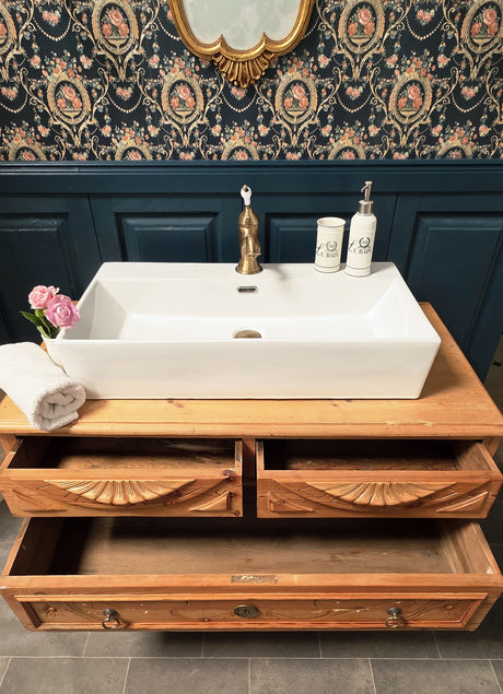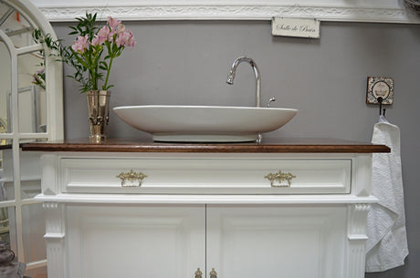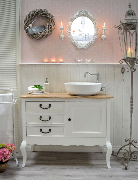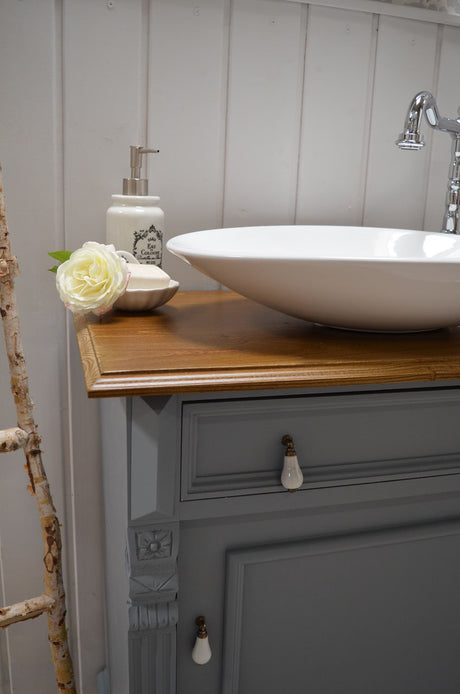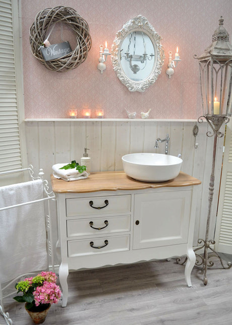 €1.665,00Grundpreis /Nicht verfügbar"Lucey" Romantischer Landhaus-Waschtisch mit Eichenplatte 100 cm