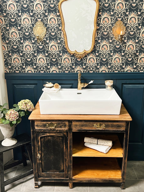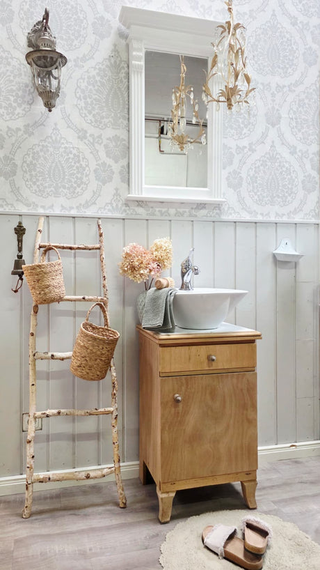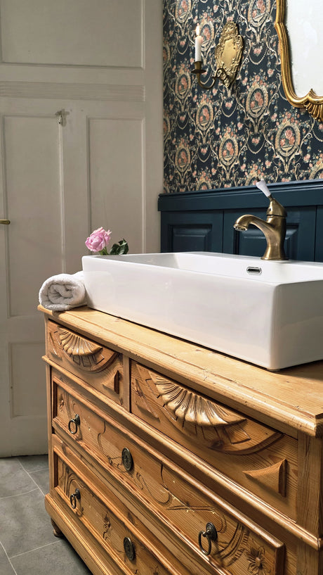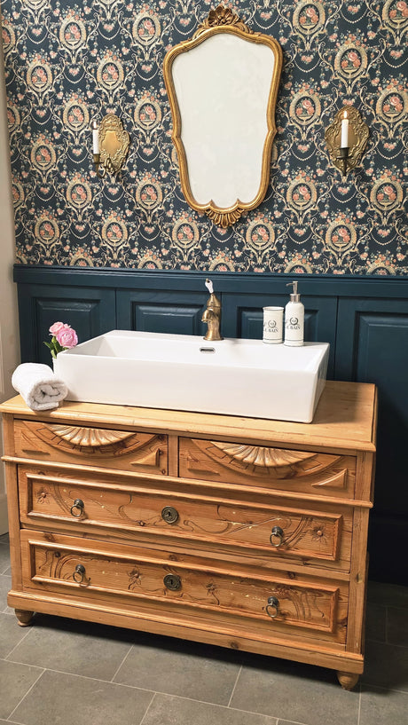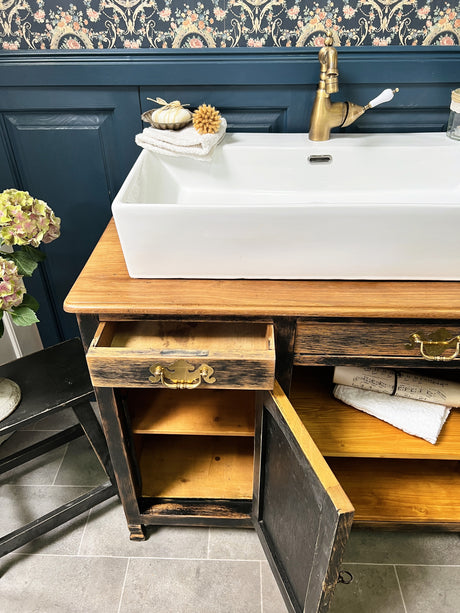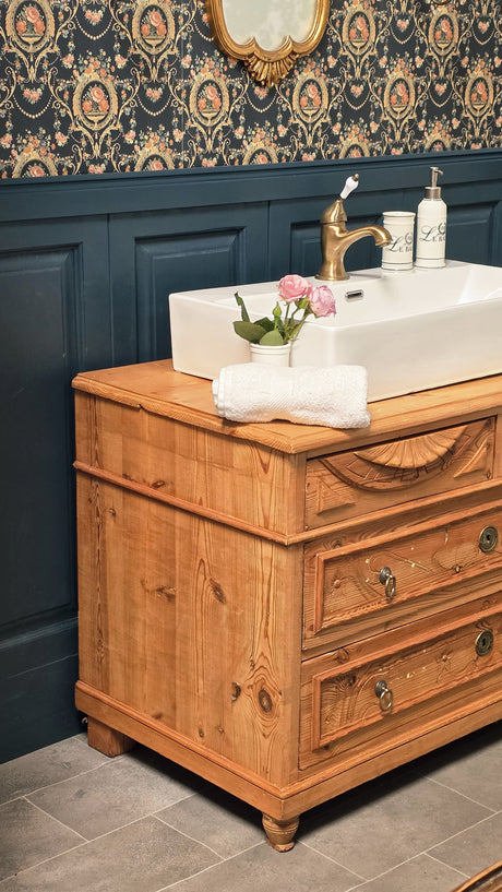 Ein nostalgischer Waschtisch erweckt Sehnsüchte nach vergangenen Zeiten und lässt unsere Vorstellungen mit Erinnerungen verschmelzen. Nostalgie äußert sich beim Waschtisch besonders beim Holz hinsichtlich der Verzierungen und Nuancen, welche direkt sichtbar werden.