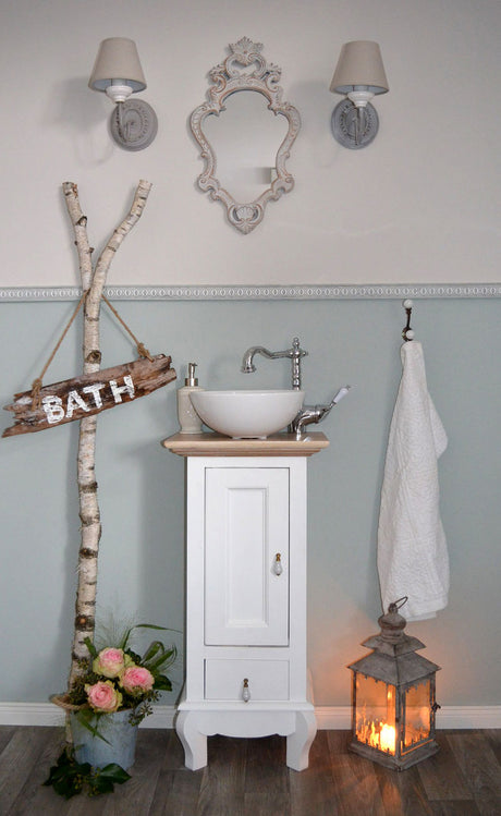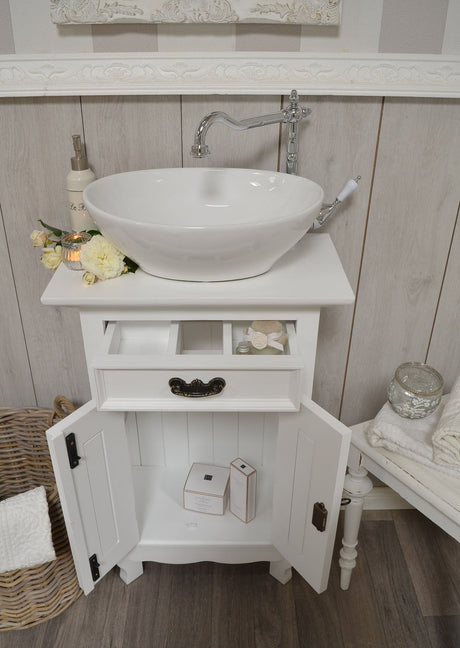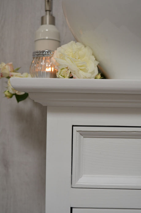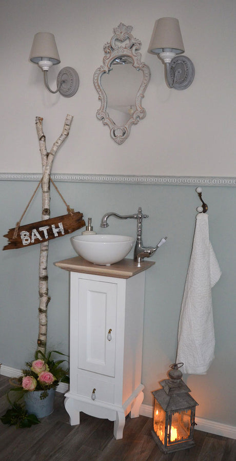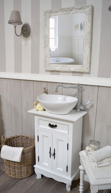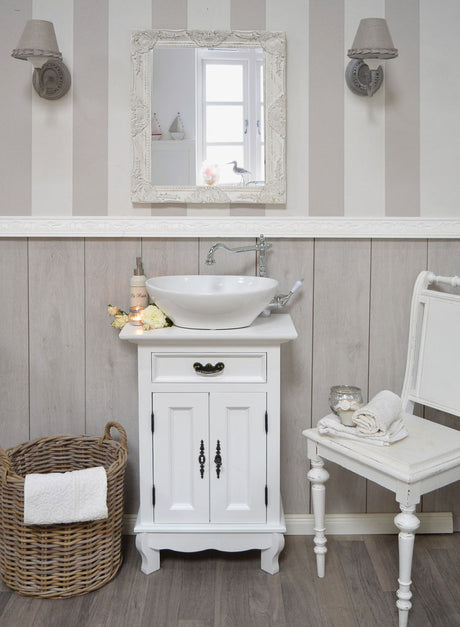€769,00Grundpreis /Nicht verfügbar"Loutrice" kleiner, weißer Landhaus-Waschtisch im romantischen Stil 53 cm