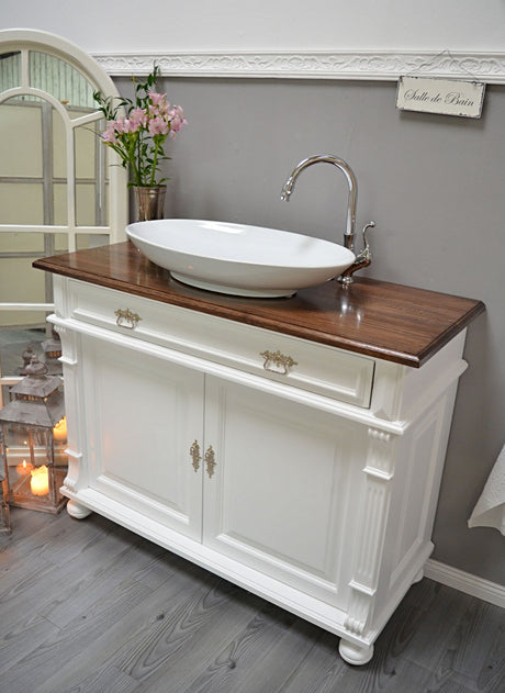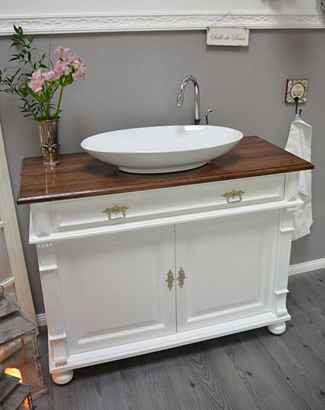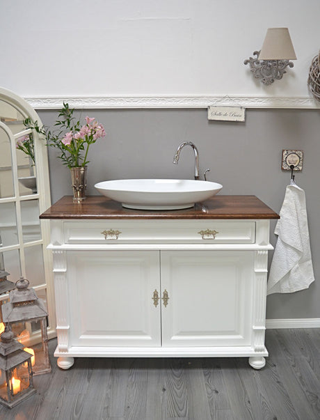 €1.229,00Grundpreis /Nicht verfügbar"Luina" weißer Landhaus-Waschtisch mit dunkler Eichenplatte 120 cm