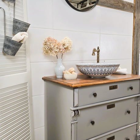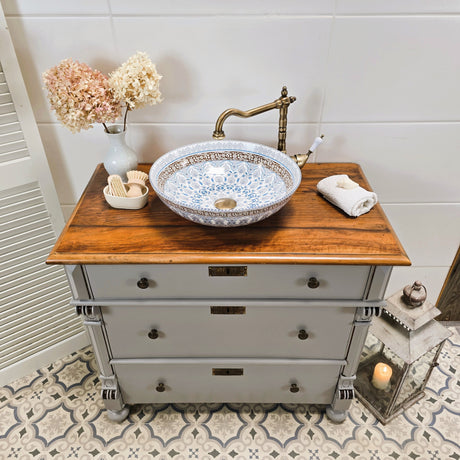 €698,00Grundpreis /Nicht verfügbar "Lykke" Landhaus-Waschtisch in taubenblau-grau 70 cm