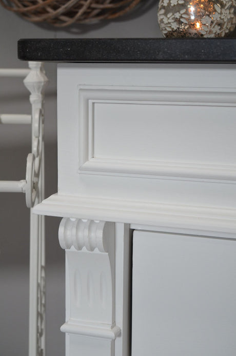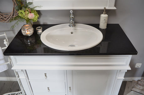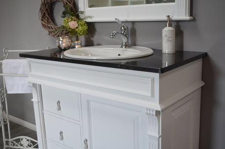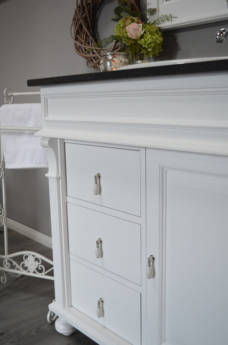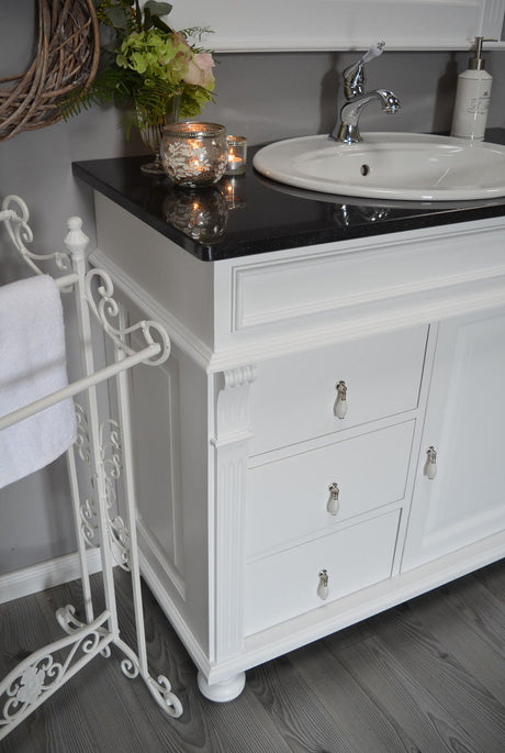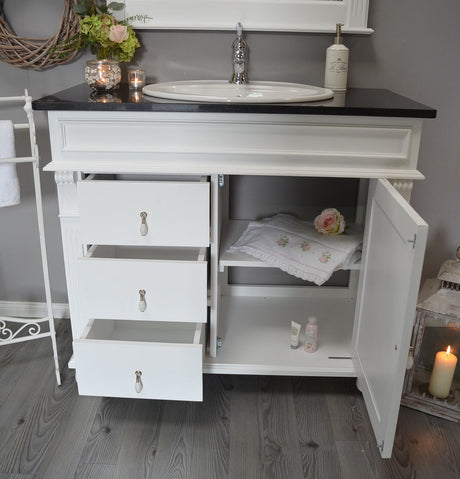 €1.449,00Grundpreis /Nicht verfügbar "Majorelle" -weißer Landhaus Waschtisch mit dunkler Granitsteinplatte 103 cm