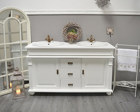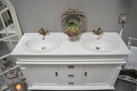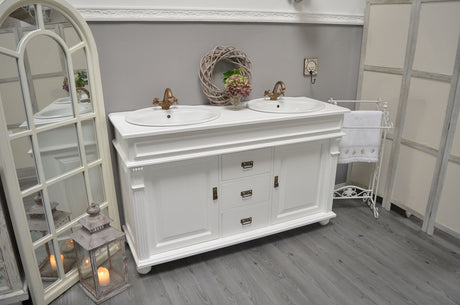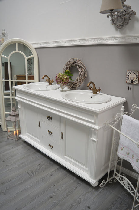 "Manchester" großer Landhaus-Doppelwaschtisch in weiß 150 cm
