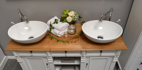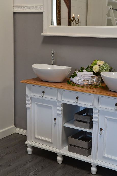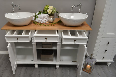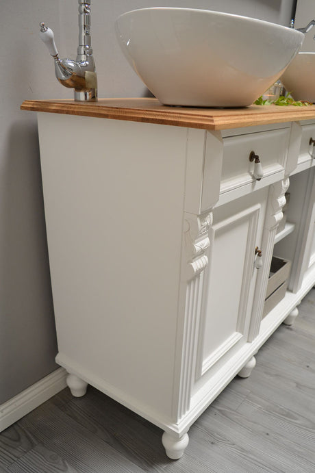 €1.398,00Grundpreis /Nicht verfügbar "Hove" Landhaus-Doppelwaschtisch mit massiver Eichenplatte 125 cm