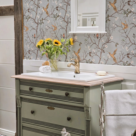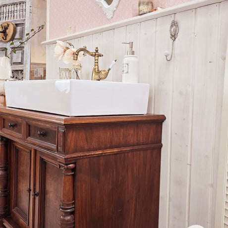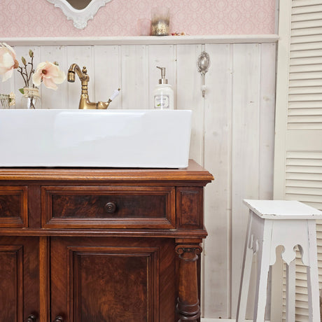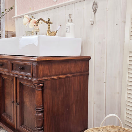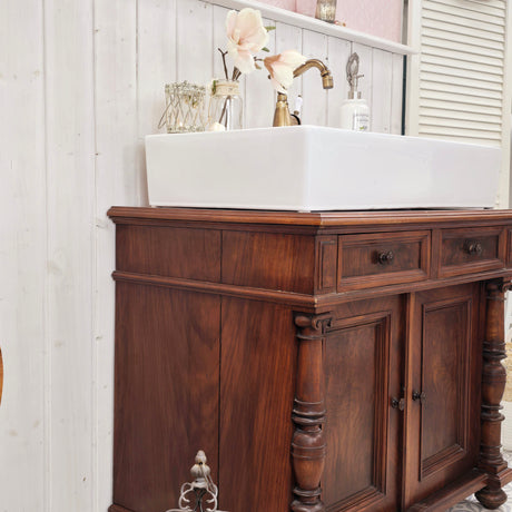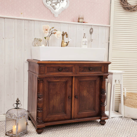 Ein nostalgischer Waschtisch erweckt Sehnsüchte nach vergangenen Zeiten und lässt unsere Vorstellungen mit Erinnerungen verschmelzen. Nostalgie äußert sich beim Waschtisch besonders beim Holz hinsichtlich der Verzierungen und Nuancen, welche direkt sichtbar werden.