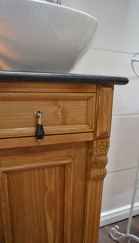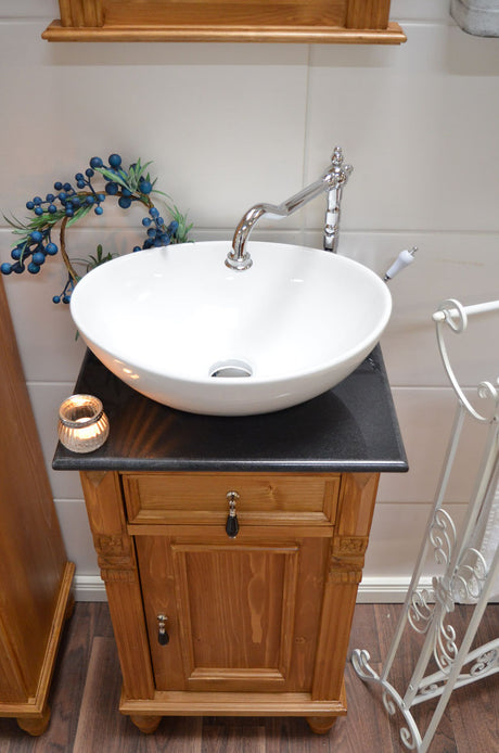 - "Miquelon" weißer Landhaus-Waschtisch mit schwarzer Granitsteinplatte 60 cm €1.195,00Grundpreis /Nicht verfügbar