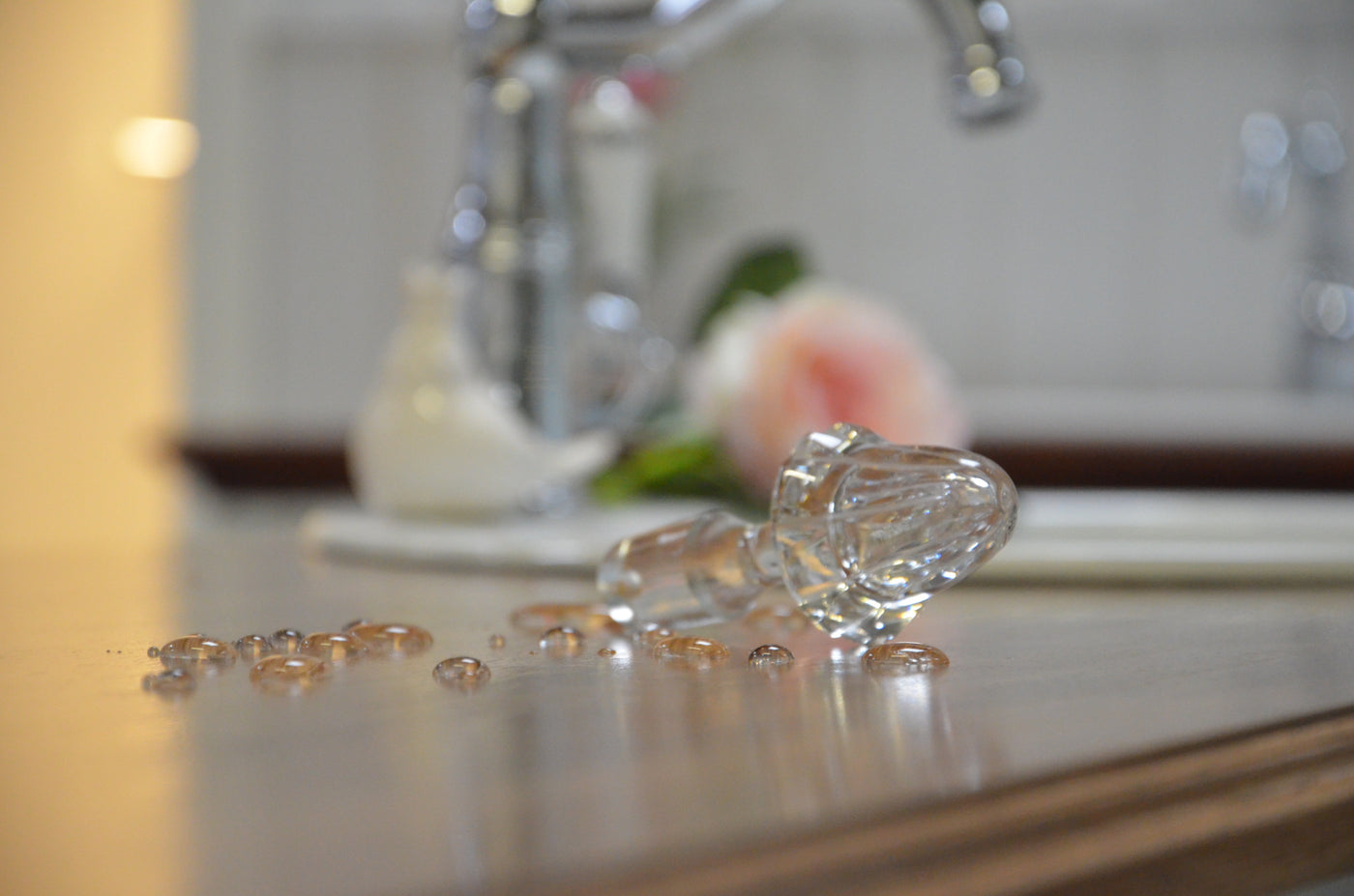 Les meubles vintage, dont les différentes couches de vernis et parfois même le bois brut sont visibles, ont un charme tout à fait particulier. Le vernis date de différentes époques, présente souvent de fines fissures ou s'écaille même. Le bois présente des fissures à divers endroits. Magnifique, du caractère, disent beaucoup de gens, mais en faire un lavabo résistant à l'eau semble impossible. Mais notre méthode est adaptée à ce cas ! Les perles d'eau se trouvent même sur les fissures du bois et seul un très léger éclat soyeux révèle que la surface a été traitée - ici aussi, bien sûr, uniquement avec des produits adaptés aux jouets d'enfants.