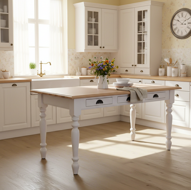 Unser Esszimmertisch wird zum Mittelpunkt Ihres Zuhauses, wo Familie und Freunde zusammenkommen, um gemeinsam zu genießen, zu lachen und Erinnerungen zu schaffen. Der Landhaustisch bietet genügend Platz für alle Momente, die das Leben besonders machen. Dank der großzügigen Tischplatte finden hier nicht nur Teller und Gläser, sondern auch Dekorationen und kleine Alltagsfreuden ihren Platz.