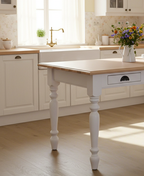 Der Landhaus-Esstisch „Diable“ kombiniert hochwertige Materialien mit traditioneller Handwerkskunst und wird so zu einem langjährigen Begleiter in Ihrem Zuhause. Seine harmonische Gestaltung fügt sich perfekt in den Landhausstil ein und macht ihn zu einem echten Lieblingsstück für stilbewusste Genießer.