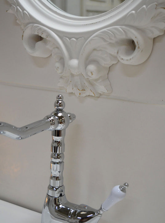 Weißer Rahmen für ein ausdrucksstarkes MöbelstückIn diesem Badezimmer entsteht ein harmonisches Zusammenspiel aus klarer Raumgestaltung und nostalgischer Möbelauswahl. Die weißen Wände wirken ruhig und zurückhaltend – genau der richtige Hintergrund...