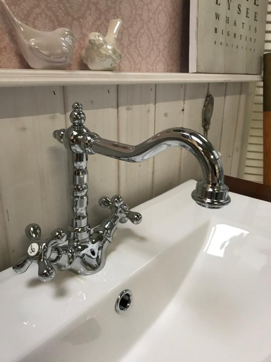 Amora chrom - Kreuzgriff-Armatur im Landhausstil inkl. Ablaufventil