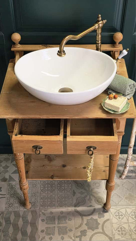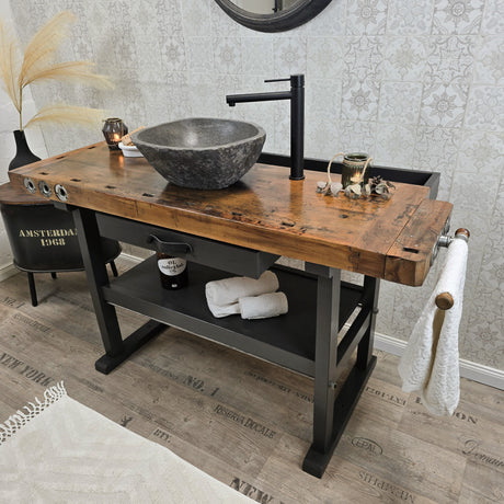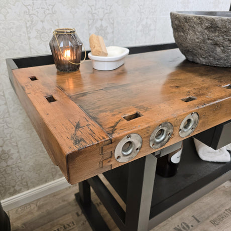 RESERVIERT für Marie "Établi" - Antiker Waschtisch aus massiver Werkbank