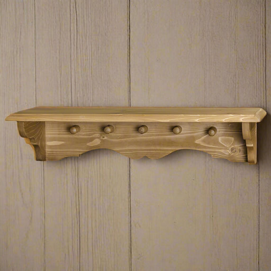 Unsere Hakenleiste mit Regal wird aus hochwertigem Fichtenholz gefertigt, das für seine Langlebigkeit und natürliche Schönheit bekannt ist. Der Landhausstil verleiht Ihrem Raum eine warme und einladende Atmosphäre. Die robuste Bauweise garantiert, dass Sie lange Freude an diesem Möbelstück haben werden.