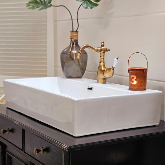 Unsere Retro-Armatur ist speziell für Waschbecken konzipiert, die eine Bohrung für eine Armatur haben. Sie brauchen keine bedenken haben, ob der Wasserhahn zur Bohrung Ihres Waschbeckens passt, denn die Bohrungen im Becken sind genormt.