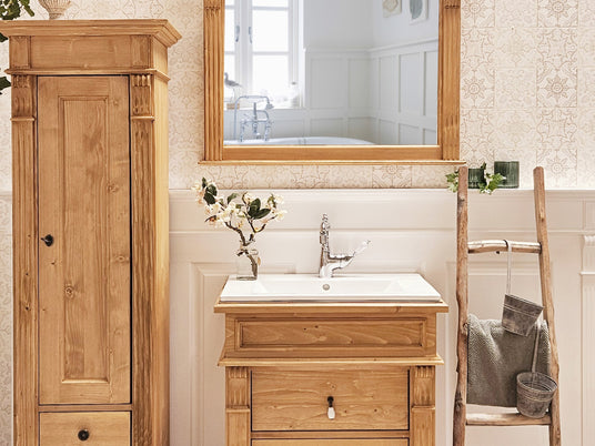 €1.229,00Grundpreis /Nicht verfügbar"Nélois" Landhaus-Waschtisch-Unterschrank mit vollabdeckendem Waschbecken 65 cm